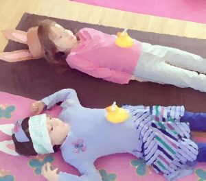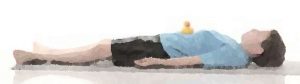 - 然後,拿出一隻小黃鴨玩具,放在孩子的肚臍上方。向孩子說明:「我們要玩個有趣的遊戲,看小黃鴨會不會游泳!當肚子脹滿氣時,小黃鴨就會浮出水面;當呼出所有的氣時,小黃鴨就會潛回水底。」